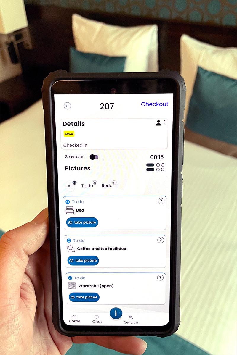 Ook kunstmatige intelligentie kan op een foto niet zien of het bacteriologisch schoon is. “Toch ziet een telefooncamera met kunstmatige intelligentie erachter meer dan het menselijk oog”, zegt Frits. “Stof op de plinten, maar ook kalk in het toilet of zand in de kamer.” Vos: “Het moment waar het nog wel eens verkeerd wil gaan, is als de zon op de ramen schijnt. Dan keurt de app het raam af, terwijl deze eigenlijk gewoon schoon is. Of als een vloer versleten is, dan zegt het systeem ook wel eens dat het vies is.” Frits: “Door het systeem dan te overrulen, leert deze daar ook weer van. Het systeem heeft eigenlijk meer foto’s van deze specifieke situaties nodig zodat hij deze wel goed kan beoordelen. De techniek van kunstmatige intelligentie gaat met sprongen vooruit. Dus die beoordeling wordt steeds beter.” Vos: “We maken anderhalf miljoen hotelkamers per jaar schoon. We maken per kamer zes foto’s. Dan heb je een hele berg aan data waar het systeem zich op kan baseren. Je ziet dat met de tijd de beoordeling steeds beter wordt.” Frits: “Je kunt met het systeem ook onverwachte dingen regelen. Zo zette één van de hotels waar we mee samenwerken de centrale verwarming uit. De airco’s op kamers gingen op twintig graden om zo energiekosten te besparen. Op basis van de foto’s konden ze controleren of in de kamers de airco op twintig graden was gezet. Dat hebben we ingebouwd in de beoordeling van de foto’s.”